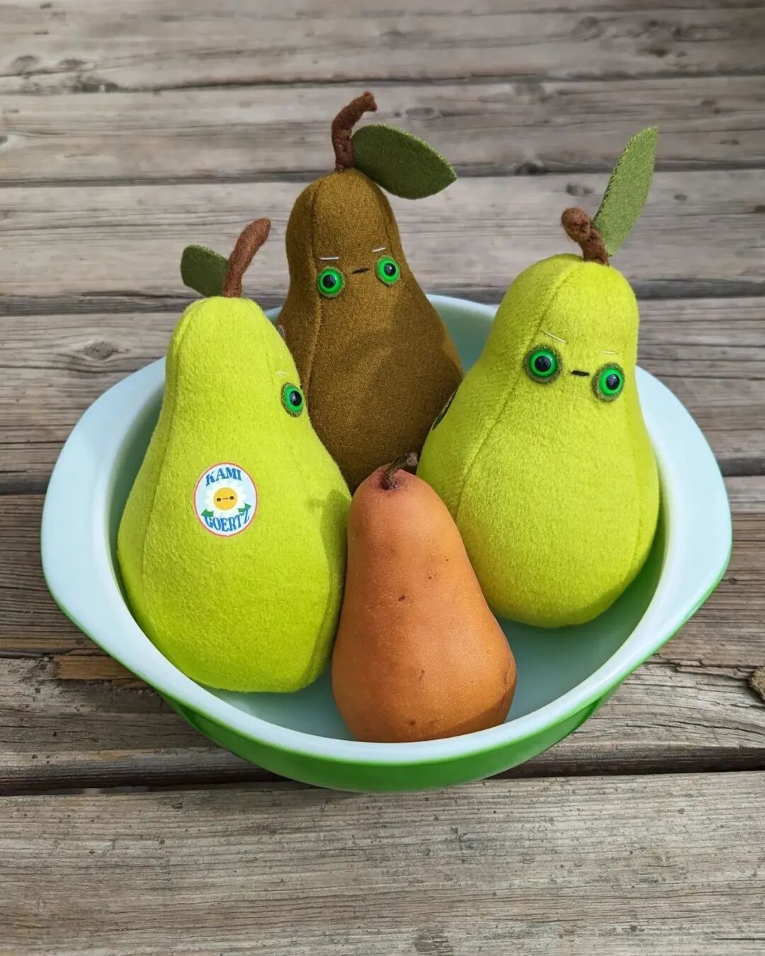卡米·戈尔茨希望人们在看到这些可爱的蔬果造型时,不仅能变得心情愉悦,也能意识到环保的重要性,从自身做起,节约有限的资源,做到可循环使用。接下来,我们就一起来欣赏这位环保主义纺织雕塑艺术家,创作的这一系列有趣的蔬果作品吧,看看我们经常吃的那些蔬菜和水果,都变成什么样了。