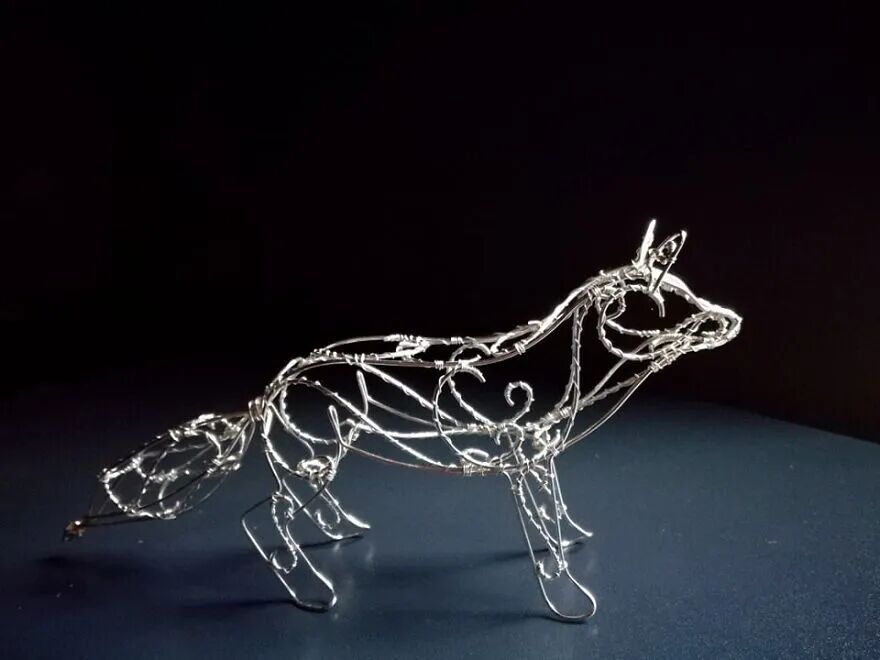 小绛今天要跟大家分享的这位艺术家,也非常有才华,他将我们最熟悉不过的铁丝,制作成了精致又精美的艺术品,这位艺术家就是莫妮卡·罗德斯,铁丝在她手中仿佛被施展了“魔法”,经过几次简单的弯折之后,就变成了一个个活灵活现的动物雕塑,以及一些精致的小物件。