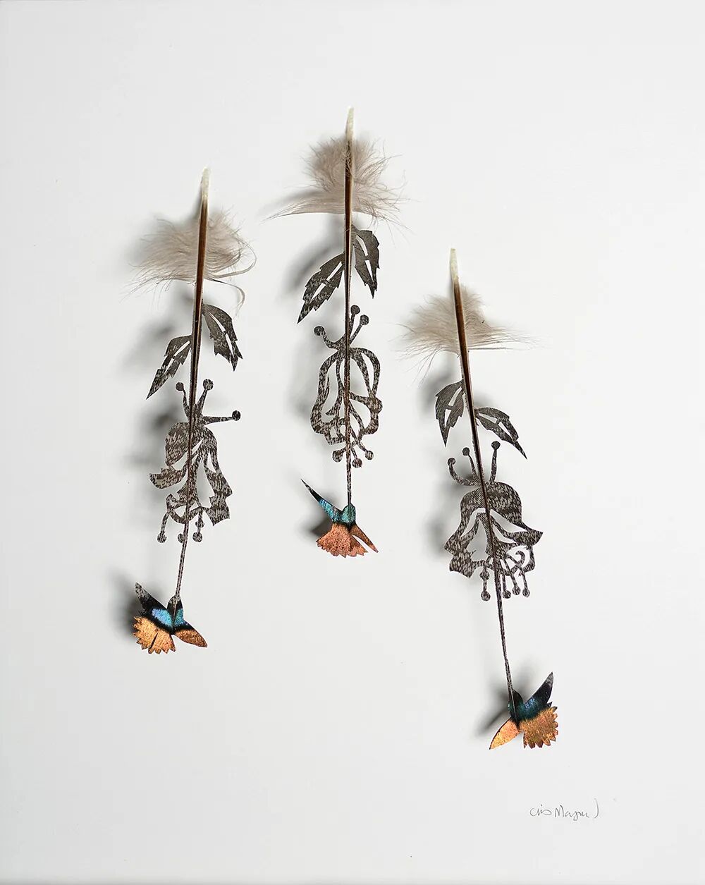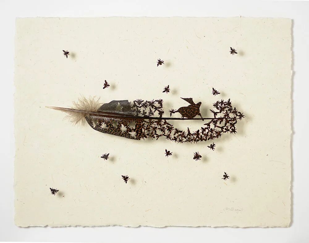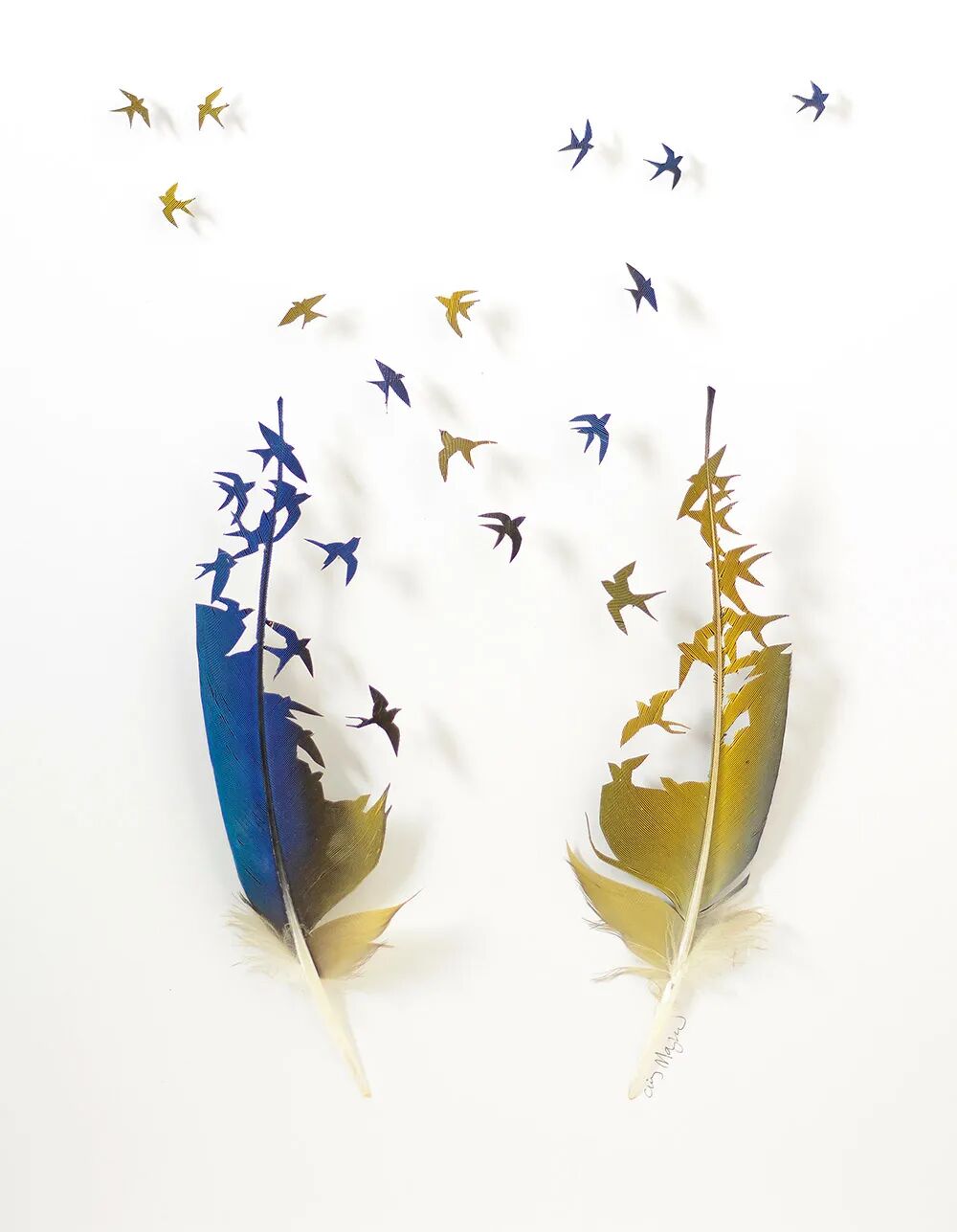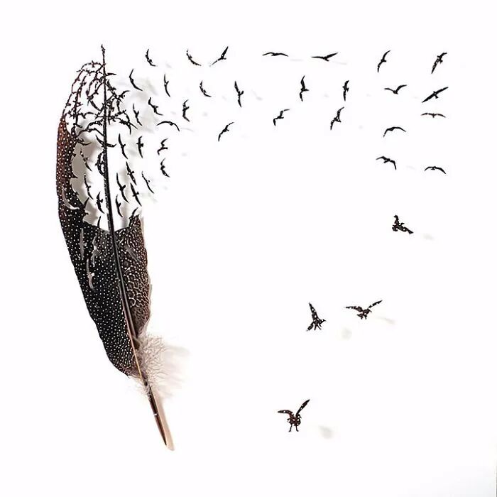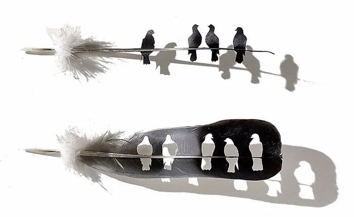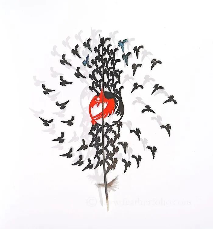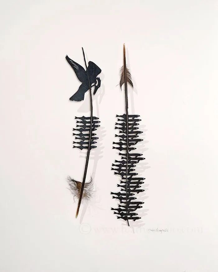 这些平常随处可见的羽毛与艺术品似乎并没有什么关联,这是因为羽毛可以创作的空间太小小,不过这些问题并没有难倒这位艺术家,克里斯·梅纳德却用这些羽毛创作出一个个精彩的作品。