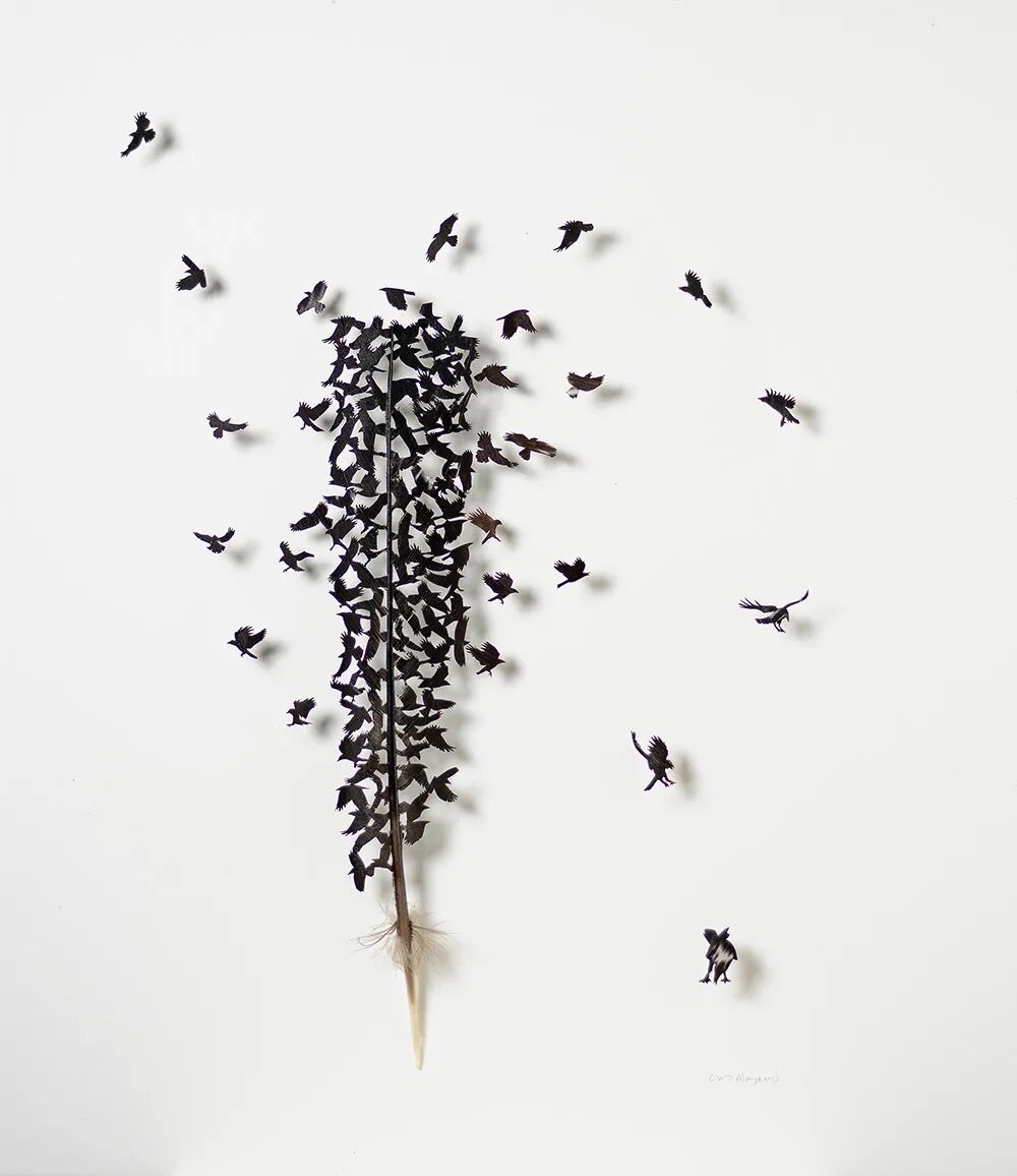 克里斯·梅纳德用羽毛制作出来的作品,仿佛给我们编织出一个个梦境,成群结队的鸟儿栖息在一片山林中,宛如一个童话世界,这种感觉太美好了!