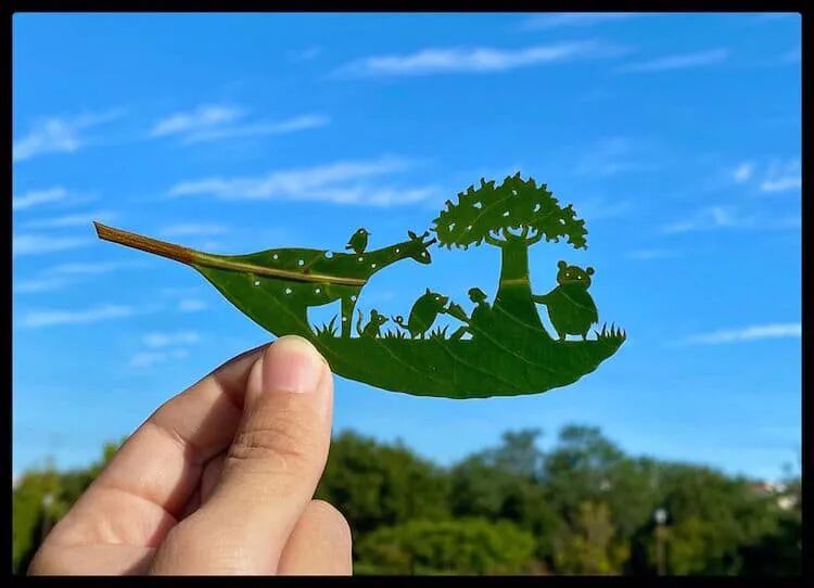 我们都知道叶子终将会变黄枯萎,用叶子制作而成叶雕作品,最多两三天的时间就会变得面目全非,让人十分可惜,不过叶雕艺术家利托并不是这么认为。