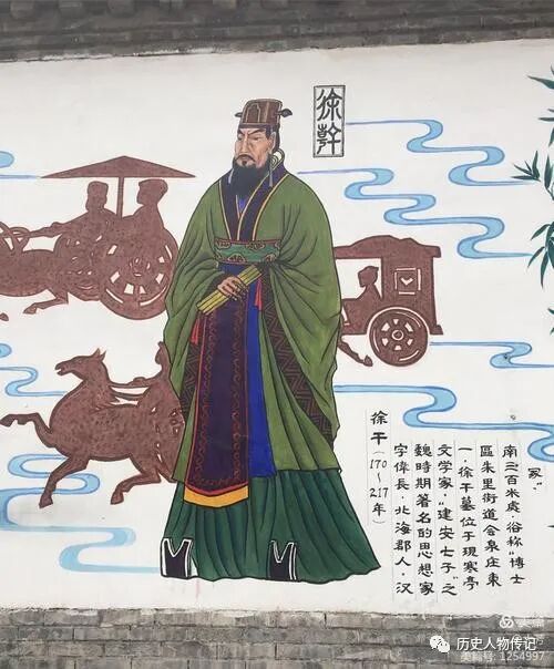 徐干(170年-217年),字伟长,北海剧(今山东潍坊市)人。清元道体,六行修备,聪识洽闻,草翰成章,轻官忽禄,不耽世荣,游居邺下。魏文尝与吴质书曰:“伟长怀才抱质,恬淡寡欲,有箕山之节,可谓彬彬君子矣。”