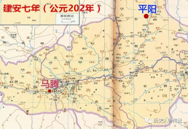 为什么这件事情值得我们注意呢?因为我们可以看到马腾是如何使用、对待马超的——自己的亲儿子,却和亡命之徒一样使用,在战场上直接与敌人肉搏,差点因此丧命。虽然马腾、马超的羌人血统和习性对此有影响,但我们仍能看到马腾对马超的凉薄。至少,我们没看到马腾其他儿子上战场的记录,只有他们跟着马腾去京师升官发财的记录。建安二年(197年),曹操已迎奉汉献帝于许都,委派颍川士人钟繇持节督关中诸军。钟繇的统战工作主要靠忽悠,写信给马腾、韩遂,一方面调解二人的争斗,另一方面劝说二人为朝廷效力。马、韩二人都派遣儿子到许昌作为人质(遣子入侍),表示了臣服的态度。遣子入侍,一般都是要求把第一继承人送来。马超继续在马腾身边活蹦乱跳,很有可能因为他不是嫡长子。此后很长一段时间(197年-208年),马腾、韩遂都驻军在关中,他们名义上听从钟繇(曹操/汉献帝)的命令,实际上割据一方,成为地方军阀。马腾在成为关中军阀后,北防胡寇,东备白骑,优待士人推荐贤才,怜悯救援百姓,受到三辅百姓爱戴。