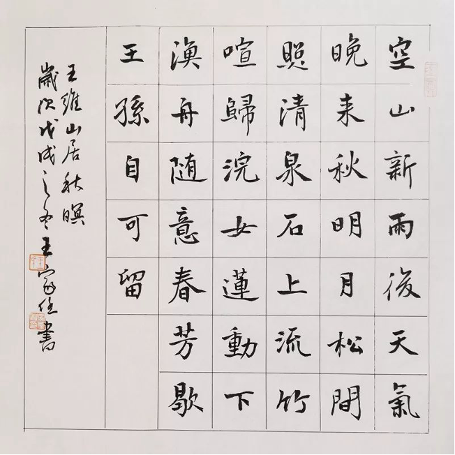 “王家任楷书作品取法墓志,笔法精巧,骏朗雅静,饶有意趣。细读详观,笔势尤佳,帖学之法,贯注笔底,点画使转、形质情性,了然于胸。”