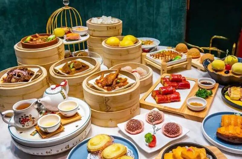 又如广式茶点,广州人饮茶,既注重茶好,更看重点心的质量和茶楼的环境。此外,广式茶点还讲究清而不淡,鲜而不俗,嫩而不生,油而不腻。总之有了茶水的滋润,点心可是悦目的艺术,品种的多样令人眼花缭乱。就这样,丰俭由人,进入茶楼选择合心意的点心,在吃吃喝喝之间,惬意的时光是属于茶客的。