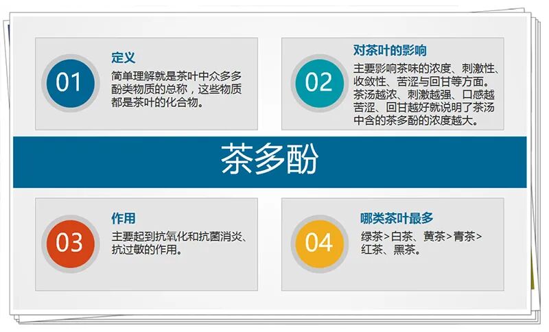茶多酚是茶叶中的一种主要化学成分。是茶叶中30多种酚类物质的总称,味苦涩。南方的茶叶、夏天的茶叶、嫩茶、绿茶中茶多酚含量最高。茶多酚具有抗衰老、抗辐射等作用。