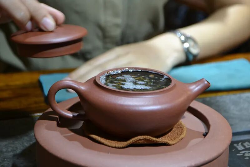 冲泡普洱茶时壶的选用最好是续温力强的、稍大一点的紫砂壶,因为紫砂壶的良好透气性和吸附作用,有利于提高普洱茶的醇度,提高茶汤的亮度。如果茶壶续温力不佳,就容易因为温度造成很大差异,进而影响普洱茶的口感、功效与作用。