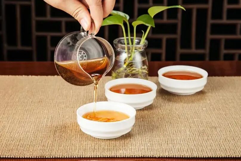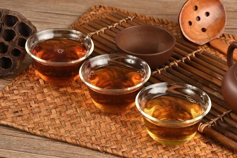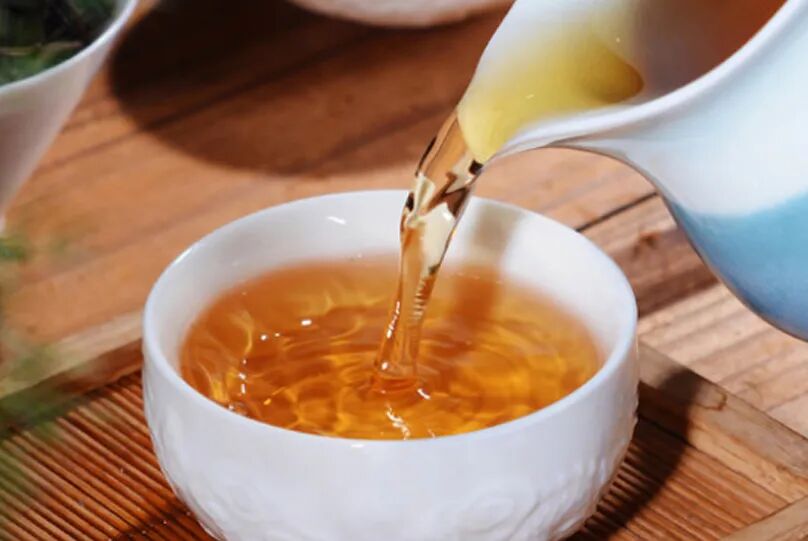 黑茶茶汤多偏褐偏暗,则是渥堆过程中产生了大量茶褐素所导致,当然也有橙黄色茶汤,则主要是茶黄素所致。黑茶具有越陈越香的品质,特别是黑茶中的熟普洱茶,可谓是黑茶中的佼佼者,其随着生茶年份增加,茶汤的颜色越来越浓,变黑变褐。而较于熟普洱茶,生普洱茶的茶汤颜色则随着年数的累积,色泽的变换趋势逐渐由绿黄、黄色、橙黄、橙红再到红色的转变。