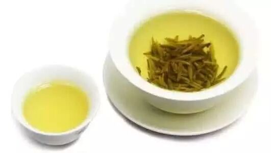 黄茶,原料细嫩,制作工艺与绿茶相近,功效相当。但黄茶较绿茶多一道“闷黄”工艺,也就是轻发酵,促进多酚类物质氧化,比绿茶口感更醇和,寒性更小。