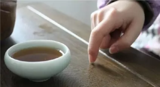 喝茶的是长辈时,用食指在桌上轻弹两下,表示感谢: