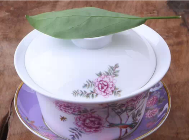 茶盖上放片树叶——“别收我的盖碗啊,一会儿还要回来喝的!”