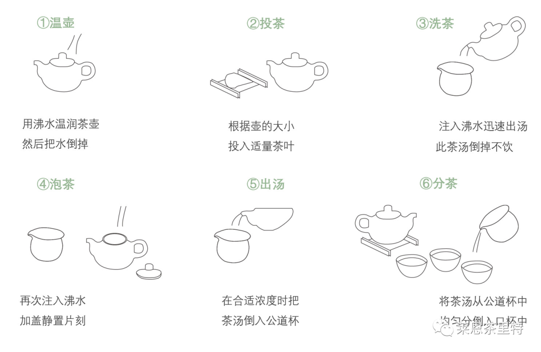 第二道孟臣沐霖:即烫洗茶壶。孟臣是明代紫砂壶制作家,后人把名茶壶喻为孟臣。