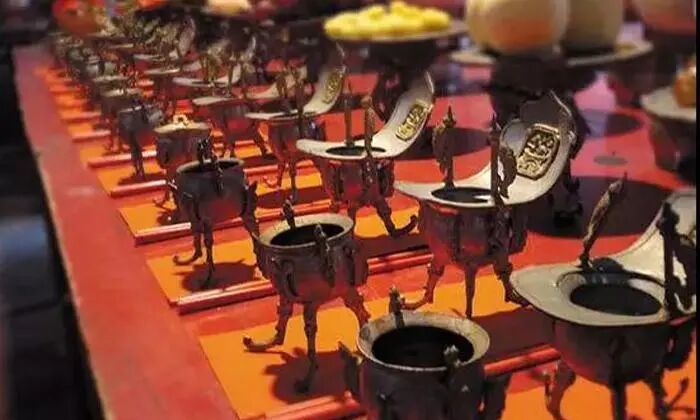 王室祭典,均为贡茶;寺庙祭佛,也用好茶。祭品用茶形式有三:在茶碗、茶盏中注上茶水;不煮泡只放干茶;只置茶壶、茶盘作象征。用茶祭祀,流传久远,日本、朝鲜和东南亚各国均有类似做法。