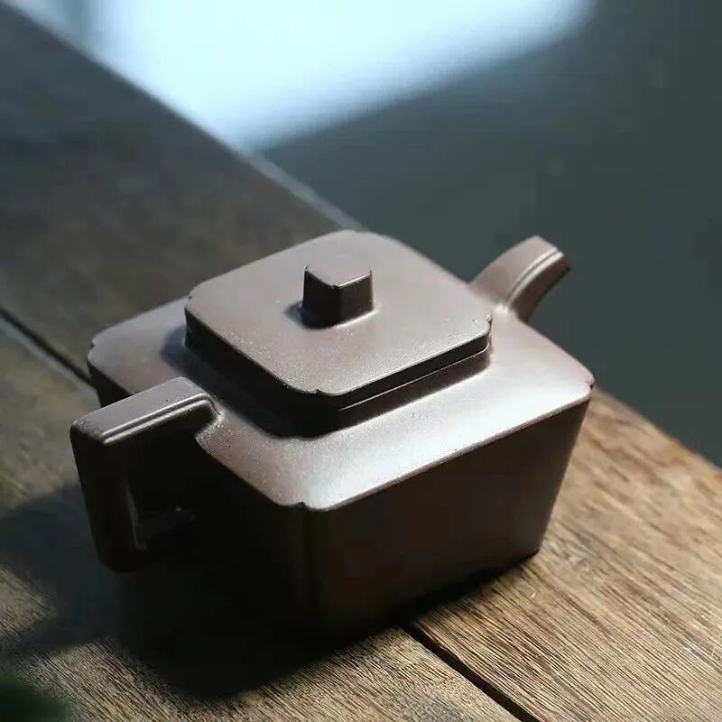 紫泥呈紫棕色,为较常见之典型紫砂泥,为江苏宜兴黄龙山矿脉所开挖出来的紫砂原矿提练而成,矿脉里铁质成份较高,泥料内所含颗粒较大,结构疏松。器身明显成双气孔结构,空气对流顺畅气孔对流较好;日久使用,渐露锋芒,养成变化甚大,为制壶上乘原料之一。