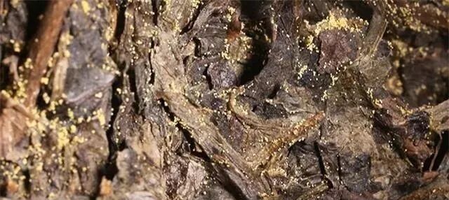 黑茶(包含普洱茶)以及茯茶中特有的“冠突散囊菌”,都俗称金花。研究证实,金花菌竟然能改变茶叶的“发香”特点。因此,金花也别认为是“越陈越香”的表现形态之一。