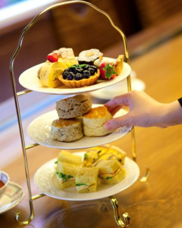 正式英式下午茶,点心是用三层点心瓷盘装盛: