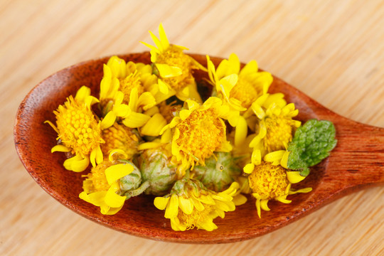 45、野菊花:性寒,味甘苦,可抗病毒,祛风湿,止头痛,明目。