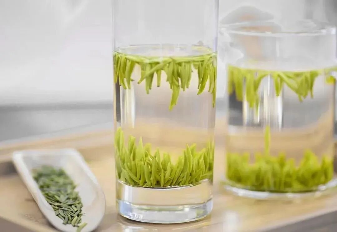 该茶外形扁似竹叶,色泽翠绿油润,内质滋味鲜醇,香气清高持久, 汤色清澈明亮,叶底嫩绿匀整,风格独特,冲泡在杯中,嫩绿的茶芽徐徐伸展,形如竹叶,婷婷玉立,似群山竹林,因而得名。