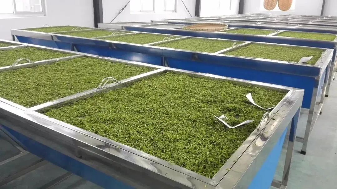机制金坛雀舌茶工艺流程为:鲜叶摊放→杀青→整形理条→摊凉→辉干。适合于金坛雀舌茶的机制工序的要点在于: