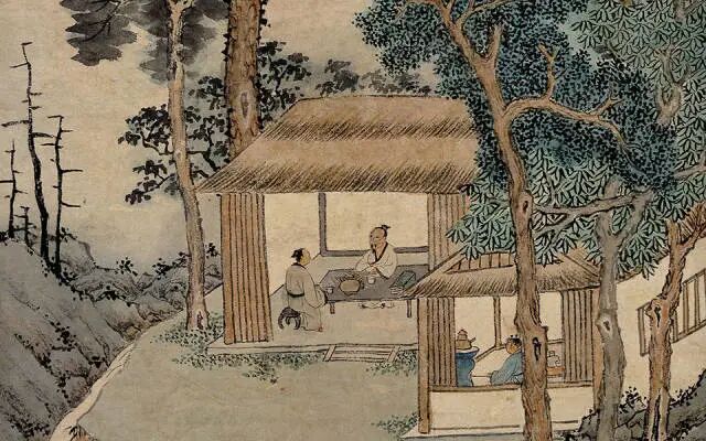 相对于酒,饮茶是一大雅事,特别是好茶的生长地,多在绿水青山云雾缭绕之境,在中国传统山水画家的心海里特别有共鸣感,很多明朝画家都喜欢在山清水秀的大自然中品茶,比如“吴门四家”的茶画就非常有代表性,文徵明的《惠山茶会图》、唐寅的《事茗图》等,他们基本都是描写山水之境下的茶人生活情趣,或饮茶,或烧水,等等,闲情逸致,乐在其中