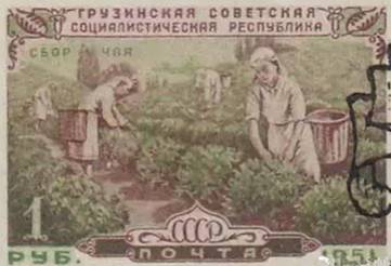 1951年,俄罗斯发行了一枚采茶姑娘在农场采茶景象的邮票。见下图