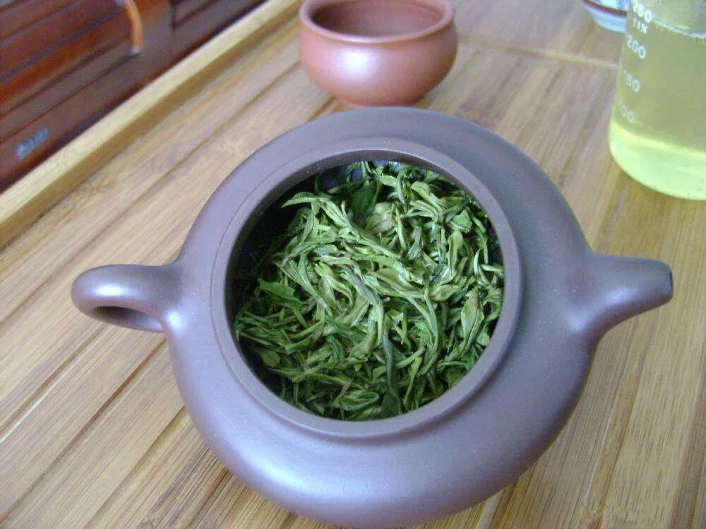 其茶色暗绿而身带光泽,索条均称,苗峰显露,纤细匀整,呈龙卷状,黛绿银尖,茸毫盖锋梢,幽香持久。汤色淡绿而清澈明亮,叶底嫩绿明亮。滋味醇和回甘鲜爽,茶味独具特色,春茶清香,夏茶梨香,秋茶醇香,冬茶莲香,经饮耐泡,饮后齿颊留香。