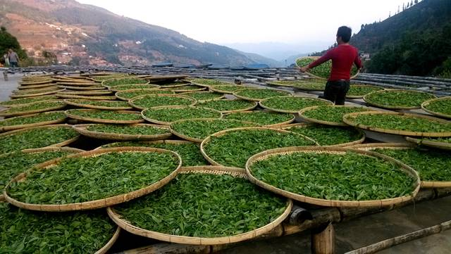 手工揉捻,揉紧茶条。成条率达90%以上为宜。历时20分钟左右