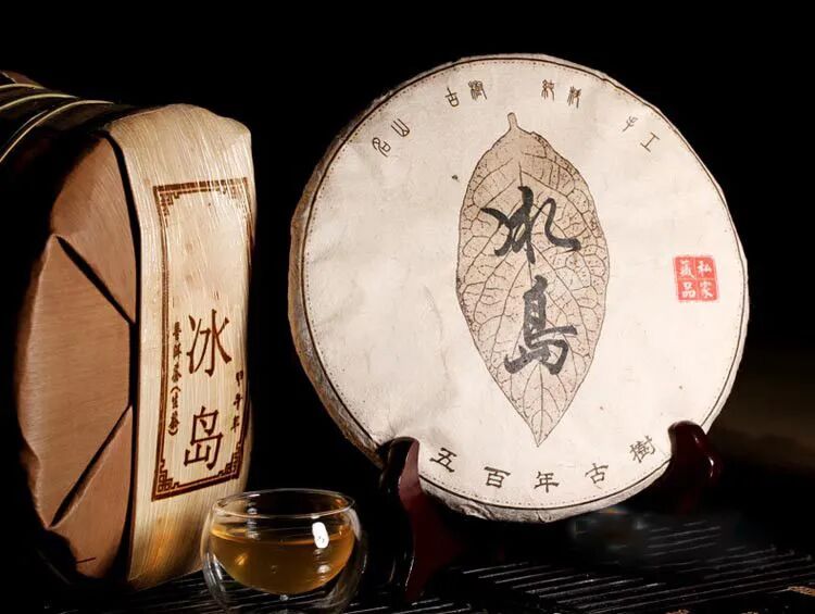 冰岛普洱茶是指精选冰岛村云南大叶种古树新叶,经过摊晾、杀青、揉捻、晒干、蒸压、干燥一系列工艺后生产出来的成品。冰岛村的古茶树是属于有性系、乔木型、大叶类、早生种,是我国1984年首次认定的国家级良种,自然生长情况下树高可达4—30米,树幅 3~12米,叶特大,叶形椭圆、长椭圆或呈卵圆,叶色绿或深绿,有光泽,叶面强度隆起,叶质柔软肥厚,部分革质。嫩芽黄绿色,肥壮,茸毛张显,持嫩性强,一芽三叶百芽重121.4克。春茶一芽二叶含氨基酸 1.7%,茶多酚33.8%,咖啡碱4.1%,儿茶素总量18.2%,故收敛性(茶气)特强,浓烈甘甜,是加工普洱茶的上乘品种。