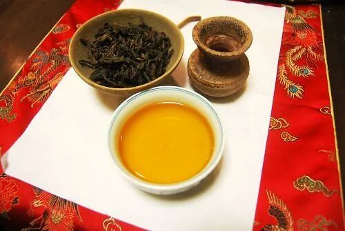 茶汤色泽橙红艳亮,随着泡饮次数的增加减淡,直到橙黄、金黄色; 茶汤滋味浓厚,茶汤带明显骨感、风格刚猛,但圆润度显不足。