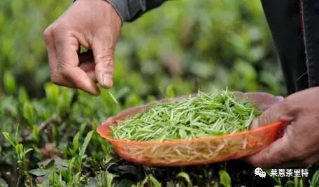 茶撷茶以黎明,见日则止。用爪断芽,不以指揉,虑气汗熏渍;茶不鲜洁。故茶工多以新汲水自随,得芽则投诸水。凡牙如雀舌、谷粒者为斗品,一枪一旗为拣芽,一枪二旗为次之,余斯为下。茶之始芽萌,则有白合,既撷,则有乌蒂。白合不去,害茶味;乌蒂不去,害茶色。