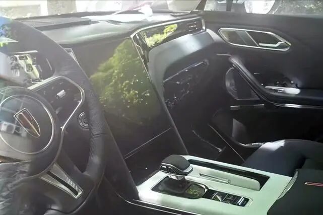 新车在内饰的设计上,采用了和全新一代红旗H5比较类似的设计风格,配备有竖式中控大屏。三幅式多功能方向盘,与红旗HQ9所配备的方向盘是同款。
