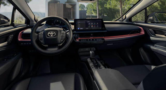 内饰上全新普锐斯使用的也是丰田最新的设计风格,配备有全液晶仪表盘和悬浮式的中控大屏,同时也保留了空调区域的物理按键。