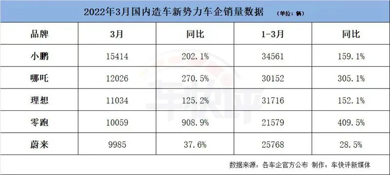 下面我们就来看一下,在刚刚过去的3月上述5家车企的销量情况如何。