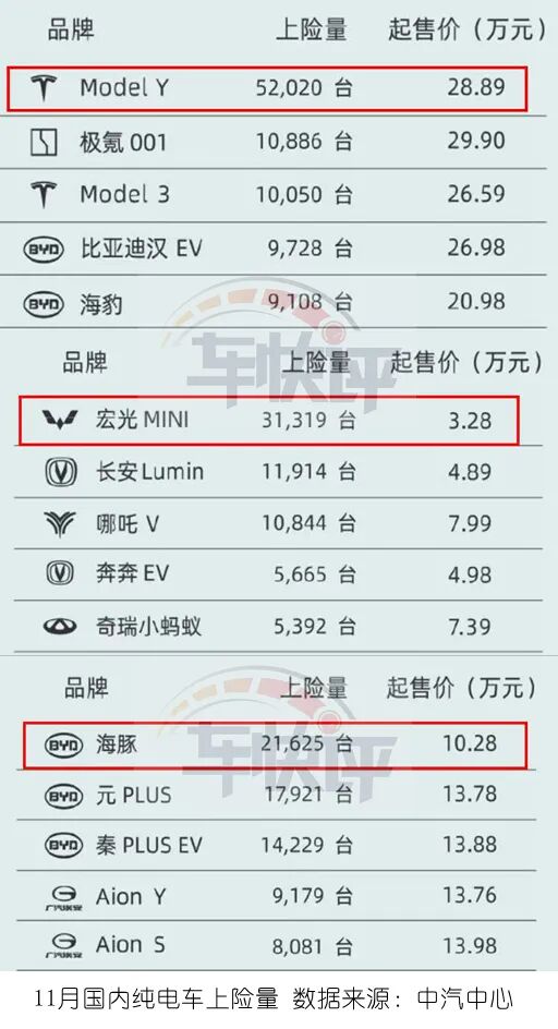 随后,中汽中心公布的11月纯电动车上险数据也正式发布。