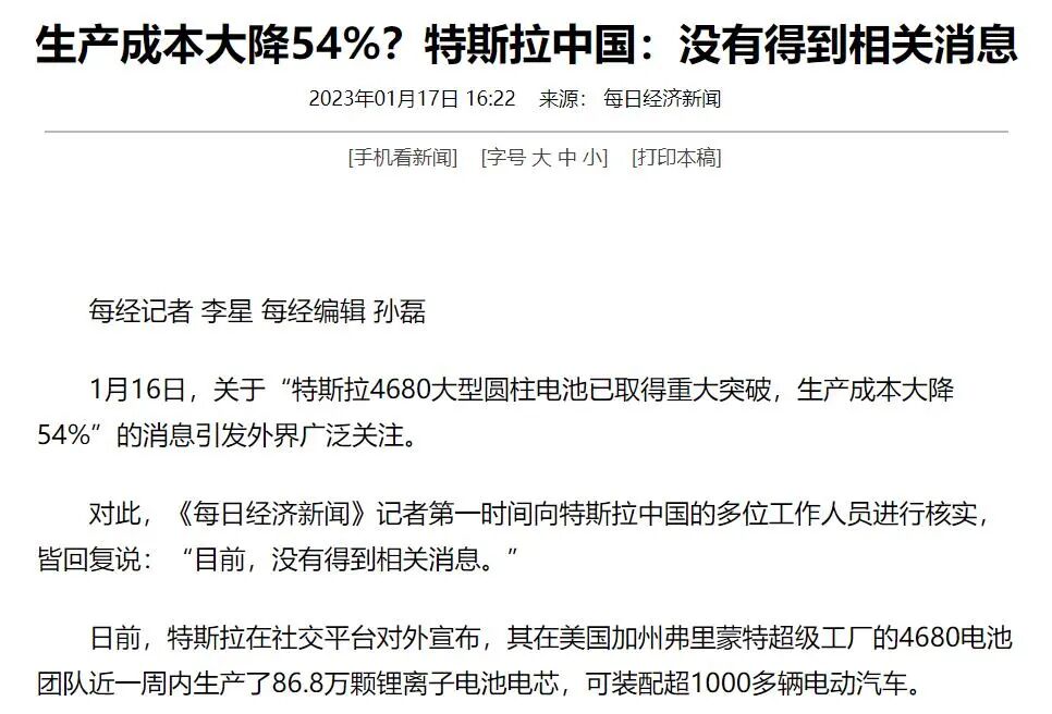 近日更有媒体报道,由于特斯拉4680大型圆柱电池取得重大突破,生产成本将大降54%。