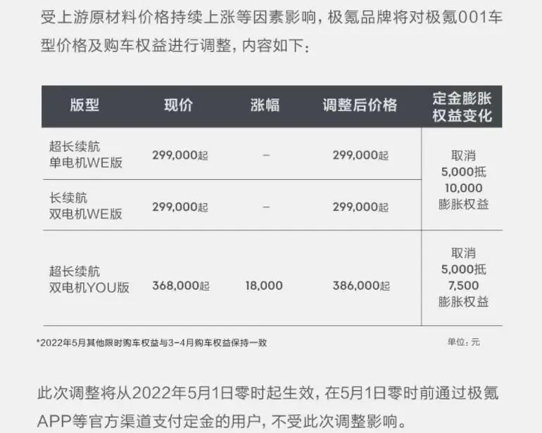 所以,作为一款纯电动车型,极氪001价格的上调,是早晚的事。