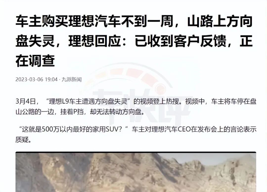 据媒体报道,3月4日一位来自北京的理想L9车主张先生驾驶车辆外出游玩,正在拐弯时发现方向盘转不动了。随后理想汽车客服打电话称后台检测了故障,又叫来了拖车。