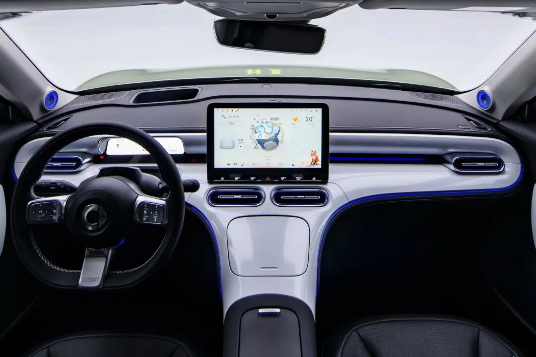 9.2英寸全液晶仪表盘、12.8英寸中控大屏、360度全景影像、交通标志识别、PM2.5过滤装置、第二排座椅前后和靠背调节、64色车内氛围灯以及对外放电以等功能,是smart精灵#1 Pro在配置上的亮点。