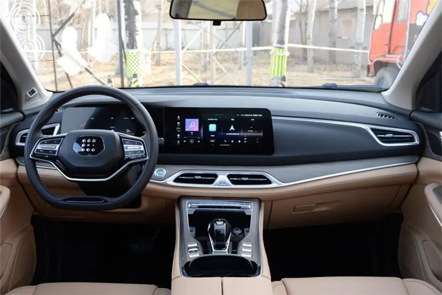 在内饰的设计上,蓝电E5并没有照搬风光580的内饰,而是采用了全新的风格。在整个中控台上,几乎取消了所有的物理按键,还配备了由7英寸液晶仪表盘和12.3英寸中控大屏组成的双联屏。全系车型配备华为HiCar 3.0、车联网和OTA升级、语音识别系统、手机APP远程控制、前排多层隔音玻璃、后排侧隐私玻璃、第二排座椅靠背调节、电池预加热和对外放电功能。