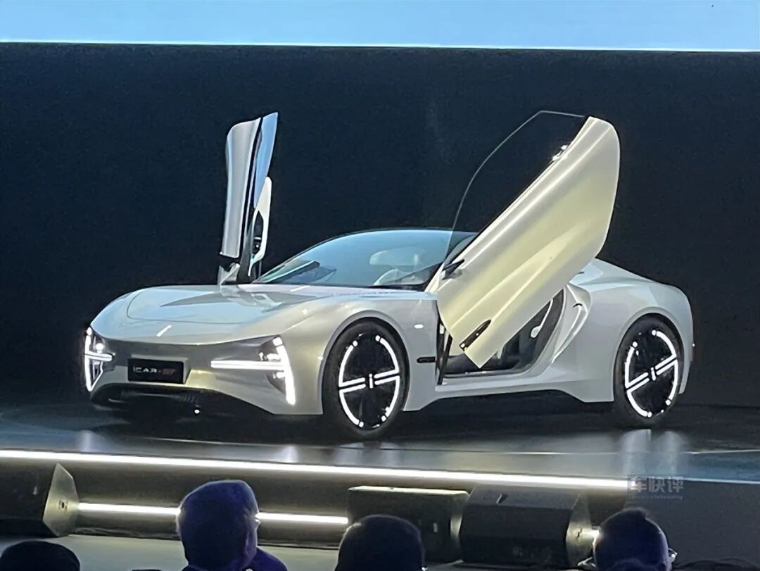 其中,概念车型iCAR GT定位是纯电超跑,外观设计充满了战斗气息,还配备有剪刀门,气势不输百万超跑。