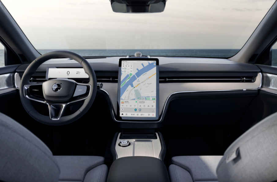 内饰部分,新车基本上也是延续了沃尔沃一贯的设计风格。变化最大的,是采用了隐藏式的空调出风口,也让整个中控台的设计显得更为简洁。新车配备了14.5英寸的悬浮式竖式中控屏、9英寸悬浮式全液晶仪表盘和酸辐式的多功能方向盘。在中控台中央部位,仍然是标志性的宝华韦健音响。沃尔沃传统燃油车上的水晶挡把并没有出现在EX90上,取而代之的是大多数新能源车所采用的怀挡设计。