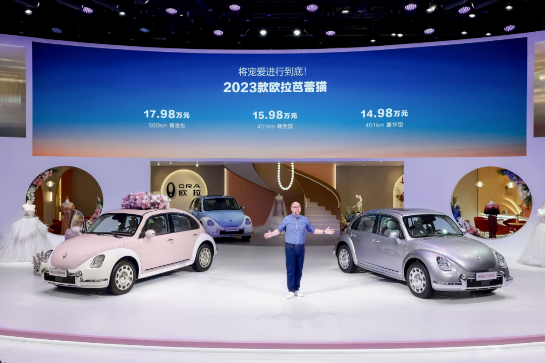 在4月18日开幕的上海车展上,长城旗下的新能源品牌欧拉推出了2023款芭蕾猫。相比现款车型,新车价格全面下调,入门版车型的售价只有14.98万元,一口气降了4万多。