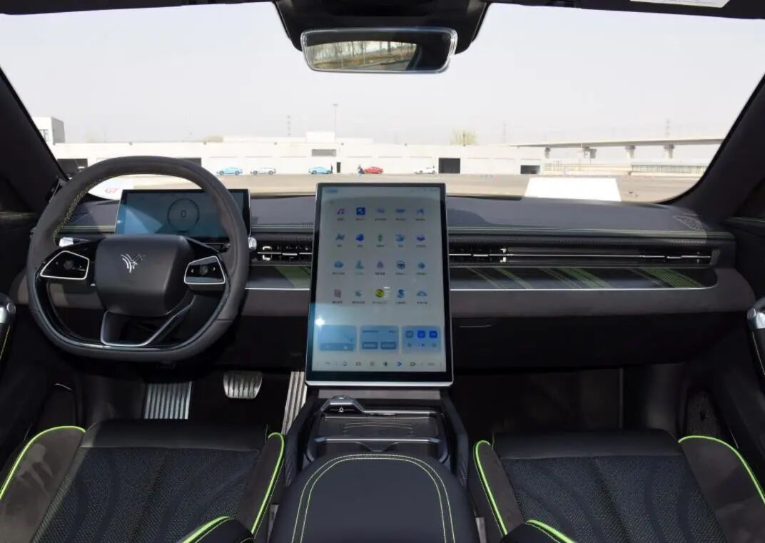 内饰的设计上,哪吒GT也显得比较简洁。全系车型均配备有10.25英寸的悬浮式全液晶仪表盘和17.6英寸的竖式中控大屏。4G网络和OTA升级、高通骁龙8155车机芯片、蓝牙钥匙、手机无线充电、模拟声浪、前排座椅电动调节、前后雷达、对外放电、自动空调和自适应LED远近光灯全系车型标配。