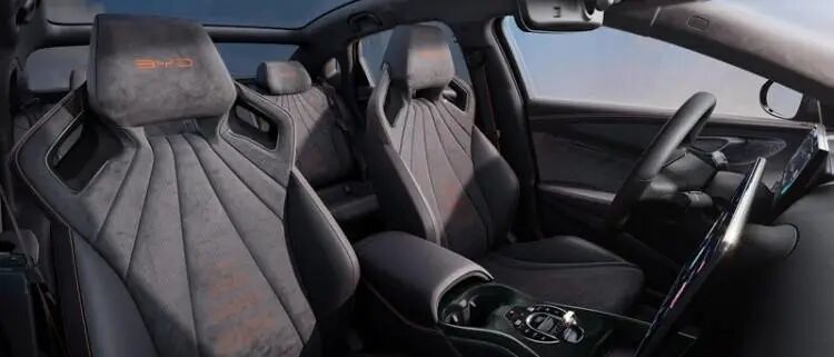 四驱性能版车型直接将现款车型需要选装的翻毛皮材质座椅改为实际配置,座椅也采用了运动风格,更加突出了海豹的运动性能。
