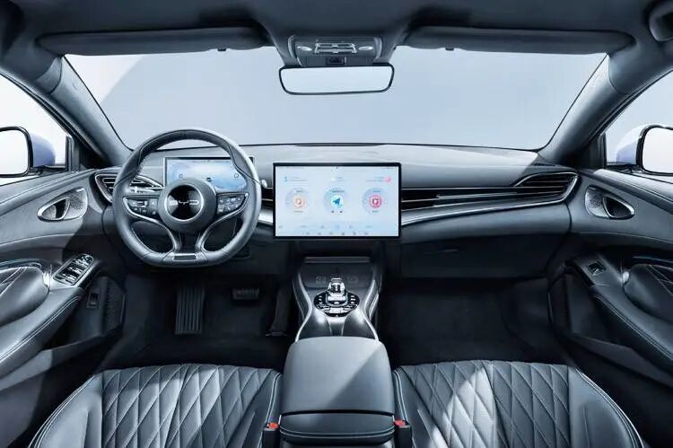 在配置方面,还增加了苹果手机NFC解锁功能,并且全系车型均增加了电子儿童锁,科技配置升级。除官方指导价为18.98万元的550km精英型配置,其余4款车型均配备有真皮方向盘和真皮座椅、前排座椅通风加热、车载KTV、丹拿音响、车内氛围灯和后排侧隐私玻璃。