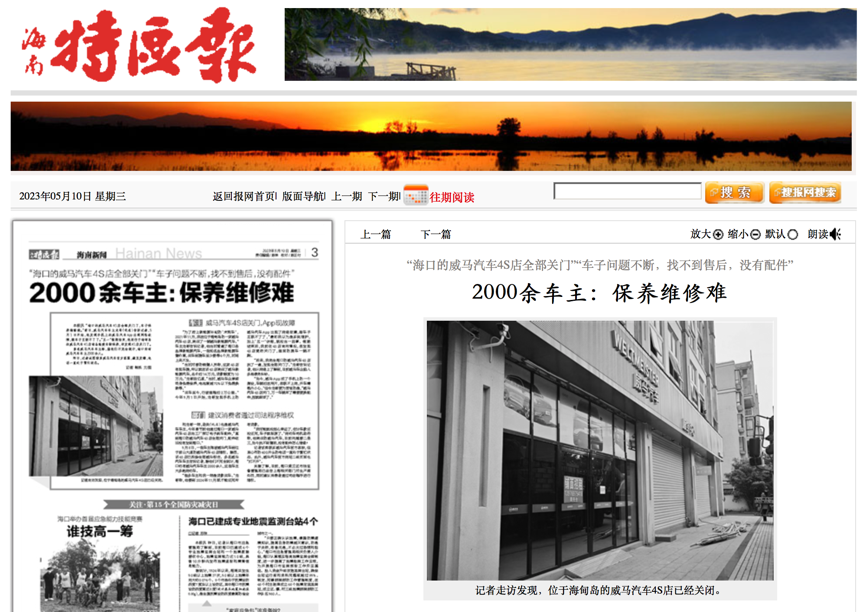 另据媒体报道,位于海南省海口市的威马汽车4S店在近日全部停业,导致2000名威马车主在车辆出现问题后找不到售后,维修保养都成了难题。