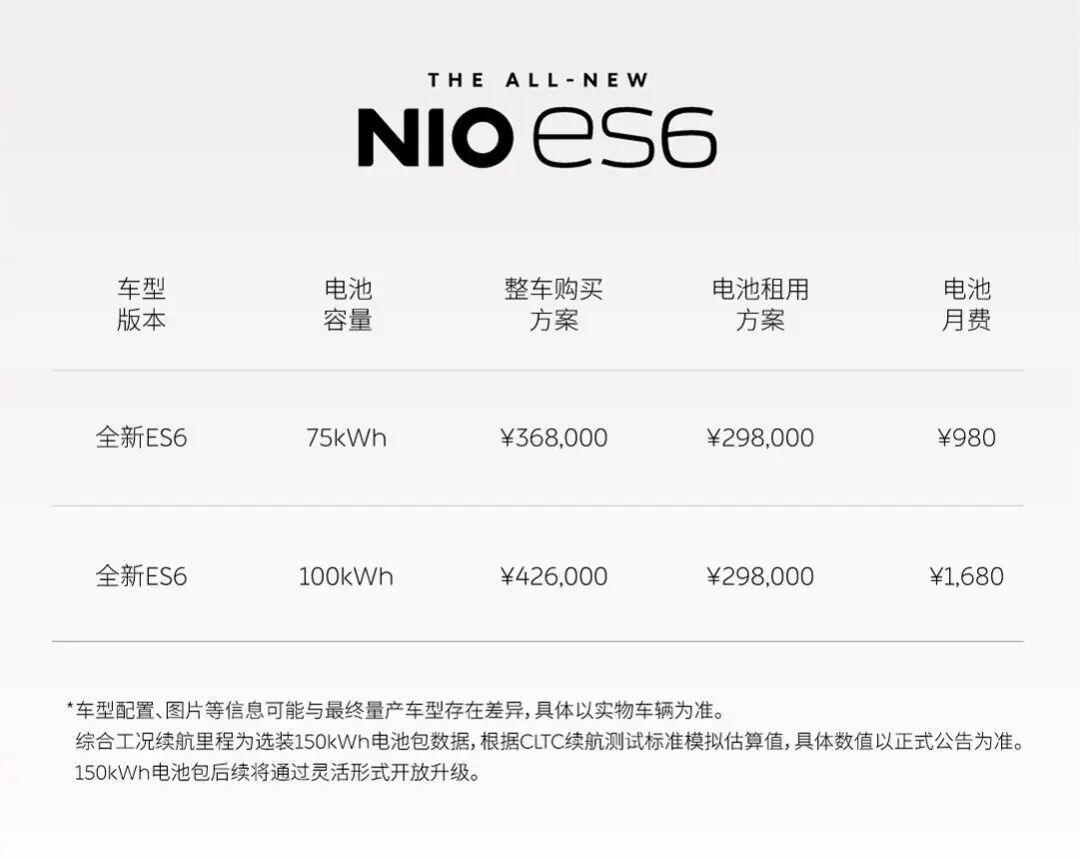 全新蔚来ES6 100kWh车型下调幅度更高,比现款蔚来ES6 100kWh性能版便宜了5.8万元。