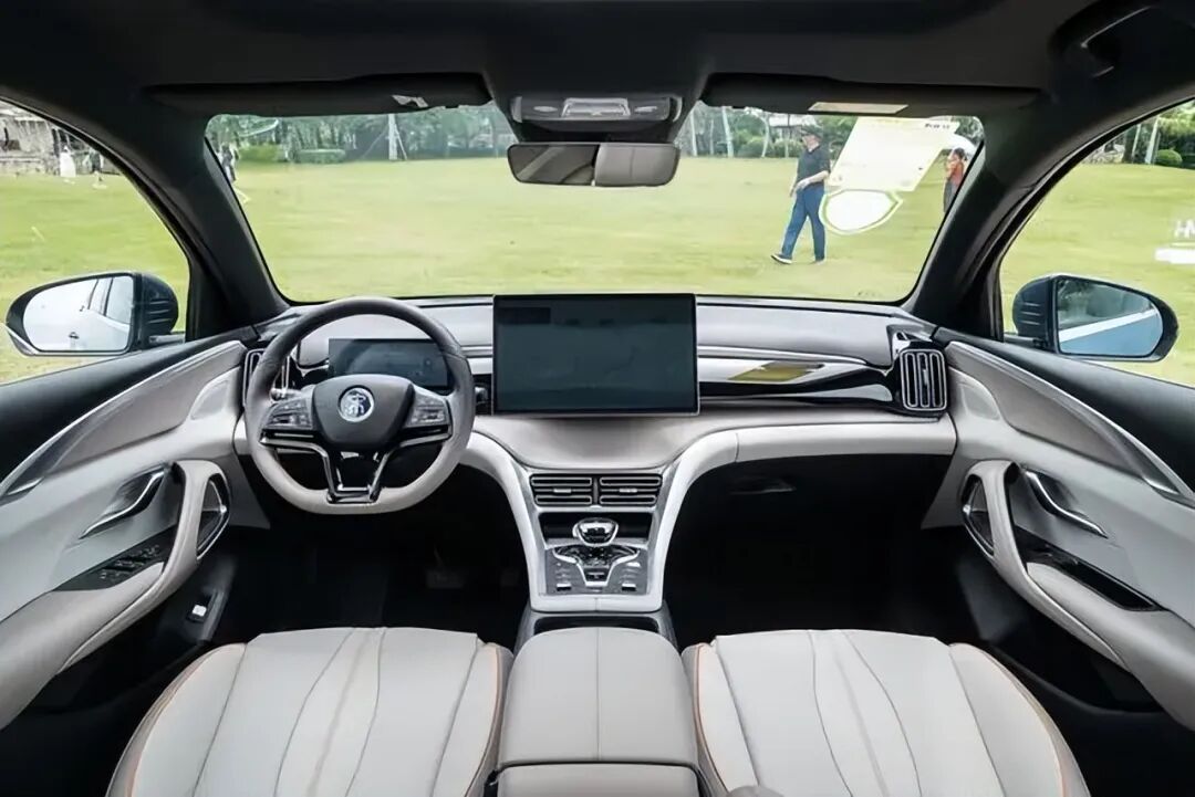 内饰基本上延续了现款车型的设计风格,在配色上同样也增加了“净月米”配色。入门版车型配置上增加了540度透明底盘、车载KTV、四门车窗一键升降、可开启全景天窗、对外放电、外后视镜锁车自动折叠以及前雷达等配置。在智能硬件上,还增加了两颗超声波雷达和三颗摄像头。