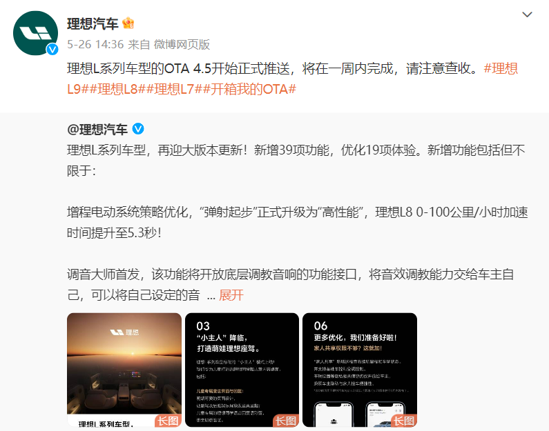 在这次理想汽车官方推送的OTA 4.5.0版本更新中,新增了多达39项功能和19项优化体验。但是,理想ONE却被排除在外,升级只针对理想L系列车型。