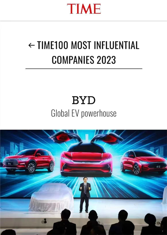 近日,《时代周刊》公布了第三届2023年全球最具影响力的100家公司,评选出了“最有影响力的100家企业”,中国车企比亚迪成功入围。